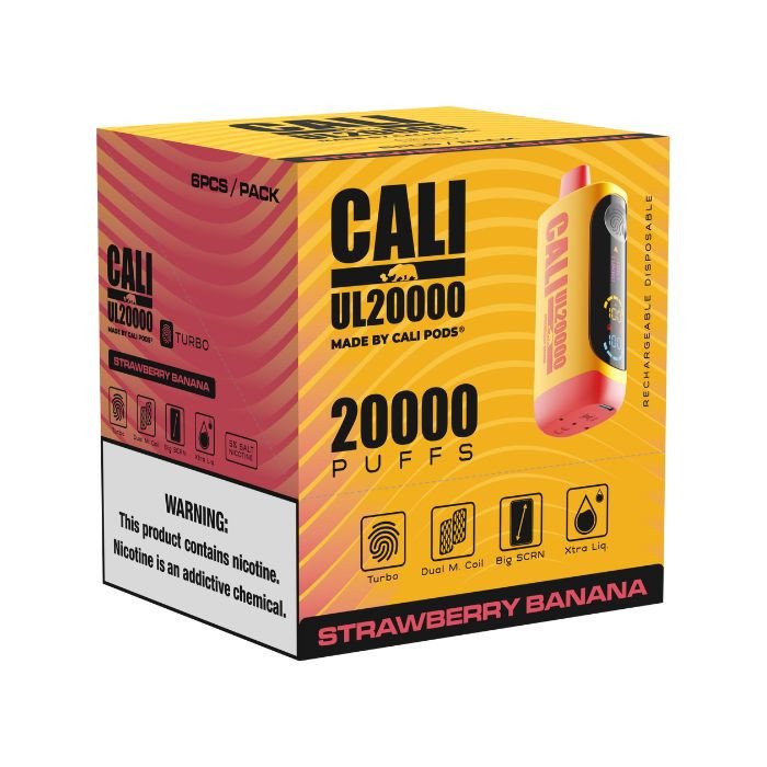 Strawberry Banana delivers a smooth cali vape experience blending sweet strawberries with creamy banana for a rich and satisfying flavor in the Cali UL20000 Disposable.